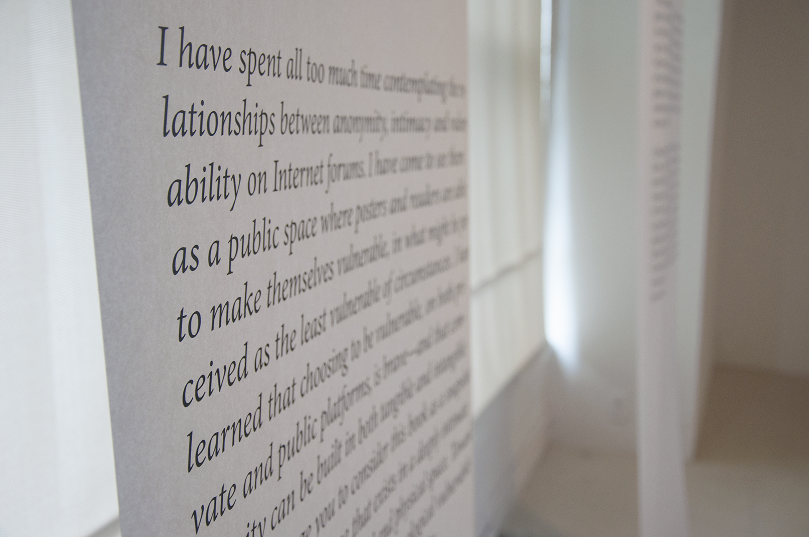 Craigslist Personals was something of an early dating platform wherein users could submit postings to catch the attention of others. Overtime, it became a multi use space that supported many ways of connecting, be it through sex work, resource sharing, or the public divulging personal secrets. “Toward Be/Longing” was developed as an effort to preserve, archive and pay homage to the unlikely digital communities that flourished across the platform.